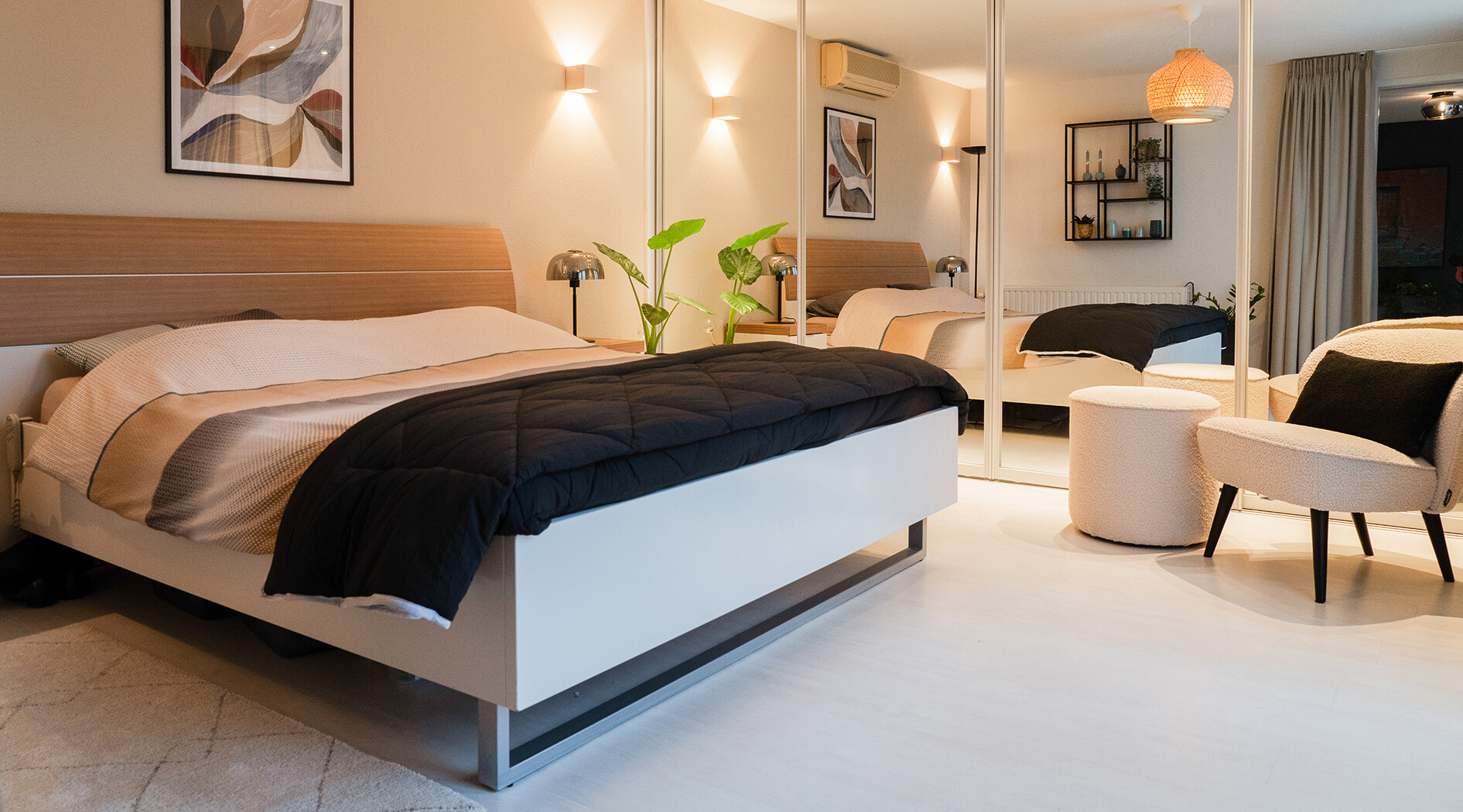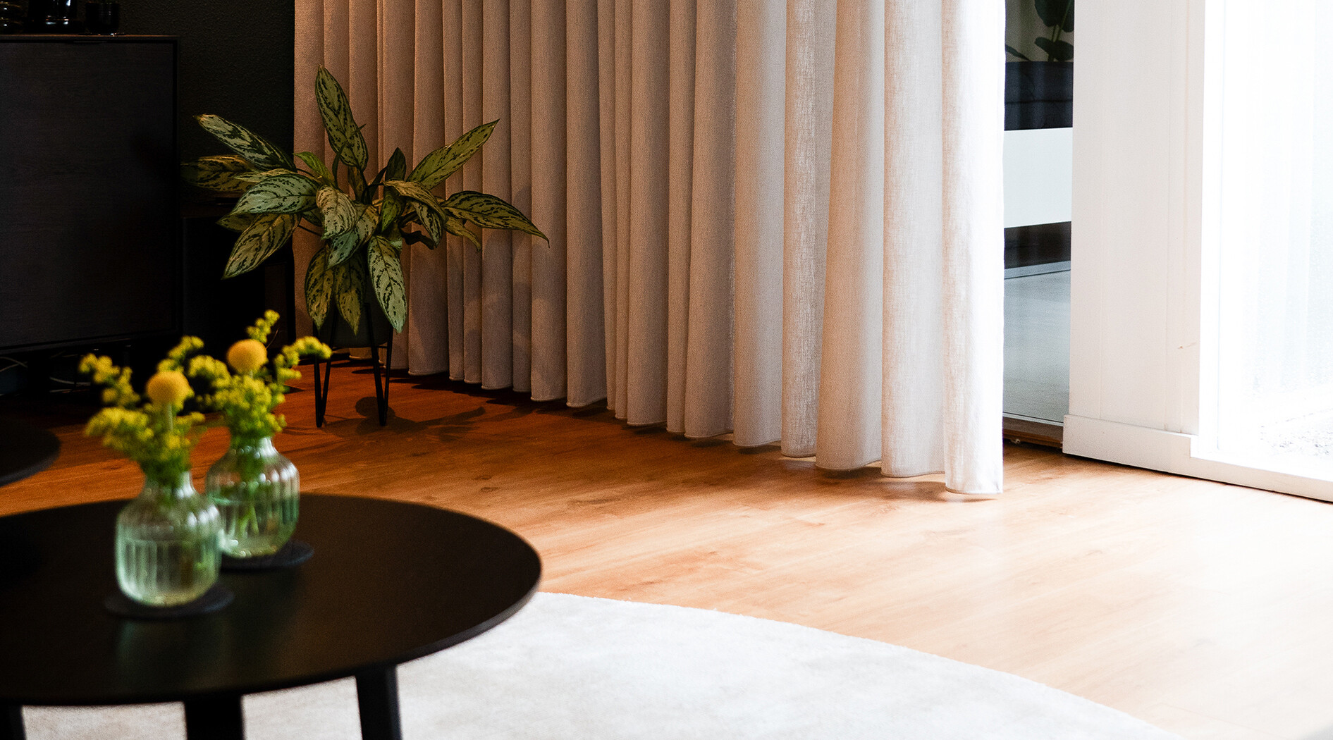 Samen met dochter Angela ging ze in de showroom aan tafel met interieurstylist Daphne. Rita: “Oh, dat is mooi,” was de reactie van Daphne toen ze de schetsen liet zien. “Ja, we kwamen goed voorbereid binnen; Daphne wist precies wat we zochten. Er waren natuurlijk detailvragen, bijvoorbeeld over welke rail bij de gordijnen, maar daar kwamen we snel uit. Het ging allemaal zó soepel en zó leuk met elkaar.”
